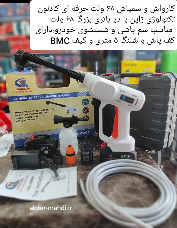 کارواش و سمپاش شارژی دو باتری بزرگ ۶۸ ولت حرفه ای کادلون مدل CDL-CM5001 تکنولوژی ژاپن