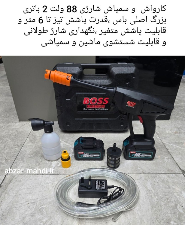 کارواش شارژی خانگی با باطری 88 ولت لیتیومی با قدرت 280وات است .حسن این دستگاه نسبت به دستگاه های دیگر این است که از سری های برنجی استفاده شده است که نشکن است ودر اثر فشار نمیشکند. حداکثر جریان خروجی سیالات در این کارواش 4/5 لیتر در دقیقه می باشد و فشار آب در بازه 22 تا 30 بار است. ویژگی کلیدی این کارواش قابلیت تنظیم فشار برای نیازهای مختلف است. از مهم ترین کاربردهای این کارواش می توان به مواردی مثل سمپاشی، تمیزکاری و آبیاری، شستشوی خودرو، پارکینگ، استخر، مبلمان، باغ، دوچرخه و … اشاره کرد. کارواش های شارژی یکی از اقلام ضروری برای در هر خانه به شمار می رود. طراحی این نوع کارواش ها به گونه ای است که بدون نیاز به آب فراوان یا حتی برق می توان از آن استفاده نمود. با استفاده این کارواش می توانید به راحتی و با صرفه جویی در مصرف آب، تنها با یک سطل آب، آبیاری سریع و پرفشاری را در منزل ، باغ ، زمین کشاورزی و … تجربه کنید. . فشار آب این کارواش خانگی در بازه 22 تا 30 بار قرار دارد که ویژگی قابل توجه این کارواش قابلیت تنظیم فشار آن است که می توانید با توجه به نیاز خود و آلودگی محل مورد نظر، آن راتنظیم نمایید. معمولاً فشارهای پایین برای آبیاری گیاهان و فشار بالا برای شستشوی وسایل نقلیه و … مورد استفاده قرار می گیرد. طول پاشش این کارواش تا 6 متر می باشد. باطری های قابل شارژ این کارواش نیز باعث در دسترس بودن همیشگی این کارواش حتی در مکان هایی که به برق دسترسی ندارید شده است.