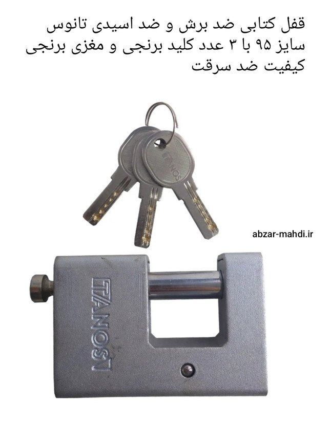 قفل کتابی 95 ضد اسیدی و ضد برش تانوس مدل 95mm با 3 کلید کامپیوتری
