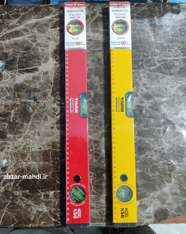 تراز بنایی مدل S50 تیوان ضد ضربه بوده و در دو رنگ زرد و قرمز تولید و عرضه میشود .