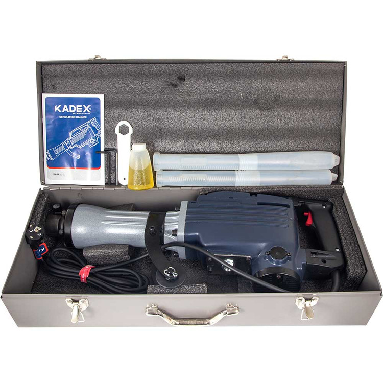 چکش های تخریب عمدتا جهت تخریب سازه های بتنی سخت از قبیل دیوار و زمین و غیره استفاده میشود. چکش تخریب برقی 16 کیلویی کادکس مدل K65A دارای قدرت 1500 وات جهت جهت تخریب دیوارهای سخت و مقاوم، تخریب زمین و غیره استفاده می گردد. این دستگاه قابلیت ضربه با قدرت بسیار بالا معادل 35 ژول را دارد تا ضربه جهت تخریب پرقدرت اعمال شود. تعداد ضربه در دقیقه در این دستگاه 1400 ضربه در دقیقه نیز میباشد تا عمل تخریب به سرعت انجام شود. این دستگاه دارای کیف فلزی مقاوم و نیز دارای دو عدد قلم رایگان جهت تخریب میباشد (سیتم قلم گیر این دستگاه شش گوش HEX است). به دلیل وجود گرد و غبار زیاد در محیط های کار بخصوص محیط های کاری که از چکش تخریب استفاده میشود و غبار زیادی در محیط پخش میشود، در این چکش تخریب از کلید ضد غبار و بلبرینگ ضد غبار استفاده شده است. همچنین لاک گیری سیم های آرمیچر این دستگاه با پوشش عالی انجام شده تا غبار ناشی از تخریب باعث پارگی سیم های آرمیچر یا بالشتک نشود. پیستون های این دستگاه با استفاده از مدرن ترین دستگاه ها تقویت شده تا کیفیت این دستگاه به حداکثر برسد. با اعمال عملیات گرمایشی استاندارد و سخت کاری بر روی دنده های این چکش تخریب برقی، همواره سعی شده تا دنده ها تقویت شده وعمر دنده ها افزایش یابد. وجود قفل کن کلید نیز از دیگر خصوصیات این دستگاه جهت راحتی کاربر هنگام استفاده از این دستگاه برای مدت طولانی و مداوم می باشد. بنه این دستگاه دارای طراحی ارکونومیک جهت خوشدستی و راحتی کاربر در حین کار طراحی شده و همچنین قسمت دسته این بدنه عایق دویل میباشد و از جنس PA6+GF30 که بهترین مواد جهت ساخت بدنه ابزار آلات برقی میباشد استفاده شده و نیمه دیگر از آلومینیوم خالص جهت استحکام بیشتر دستگاه استفاده شده است. جهت راحتی کاربر، دسته گردان 360درجه نیز روی این چکش تخریب برقی نصب شده است.