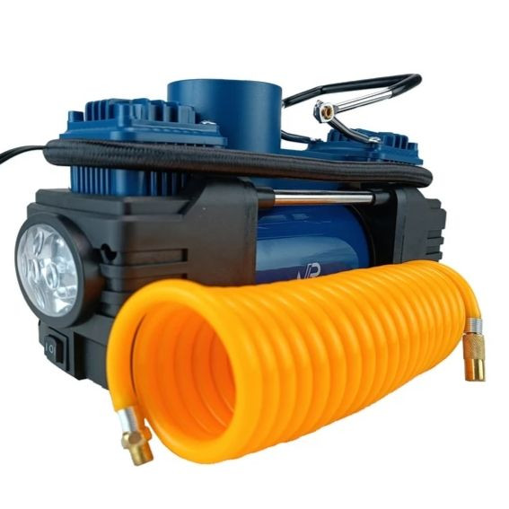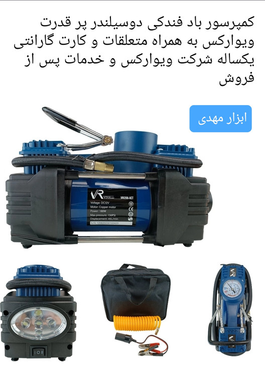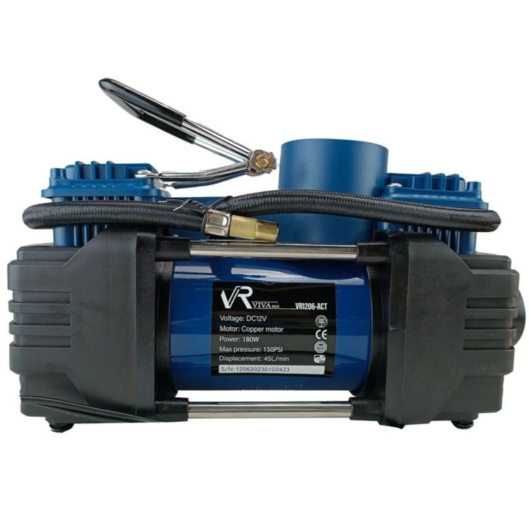 ویوارکس برندی پر آوازه در بین ابزارالات برقی و شارژی کمپرسور هوا فندکی مدل VR 1206 ACT را معرفی کرده.حتما تابحال برای شما پیش آمده که هنگام مسافرت خارج از شهر لاستیک ماشینتان دچار پنچری شود. در این حالت یا باد لاستیکها خالی شده یا شی تیزی در آنها فرو رفته است. گاهی اوقات این اتفاق در نقاط خارج از دسترس و اوقات شب اتفاق میافتد که مراجعه به آپاراتی امکان پذیر نیست. در چنین مواقعی است که وجود یک کمپرسور باد فندکی با کیت مجهز به کار میآید. کمپرسور فندکی دو سیلندر ویوارکس مدل VR 1206 ACT ابزاری از همین دسته میباشد که در ادامه بیشتر به آن میپردازیم. کمپرسور هوا ویوارکس دارای موتوری با حداکثر توان 180 واتی میباشد. حداکثر فشار باد ایجاد شده توسط این محصول برابر با 150 PSI میباشد که با داشتن دبی هوایی معادل 45 لیتر بر دقیقه میتواند به سرعت لاستیکها و قایقهای بادی یا توپهای ورزشی شما را پر نماید. فشارسنج تعبیه شده برای این محصول به کاربران اجاز میدهد تا بدون نگرانی از ترکیدن مقدار باد مورد نیاز خود را بطور کامل پر نمایند. همچنین وجود چراغ قوه ال ای دی به کاربران امکان کار در محیطهای تاریک و کم نور یا در اوقات شب را میدهد. این دستگاه به همراه شلنگ فنری، گیره باتری خودرو، سه سری نازل برای توپ دوچرخه و انواع لاستیک ماشین مجموعهایی یک کیف برزنتی و قابل حمل عرضه میشود.قسمت ورودی برق دستگاه به صورت ورود به فندکی ماشین بوده و برای استفاده از باتری ماشین تبدیل مورد نیاز آن همراهش ارسال میشود تا بیش از پیش روند استفاده از محصول آسوده تر باشد