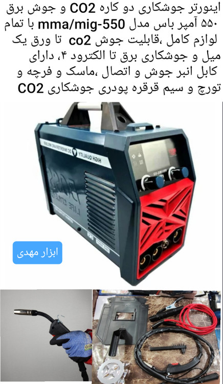 ✔ لوازم جانبی:تورچ Co2, سیم قرقره co2، کابل و انبر جوش، کابل و انبر اتصال، فرچه و ماسک ...
