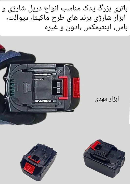 باتری بزرگ مناسب انواع دریل شارژی و ابزار شارژی مثل کارواش های شارژی، اره شارژی، مینی فرز شارژی برند های طرح ماکیتا و دیوالت برند باس، اینتیمکس، هاردمن،ادون و غیره