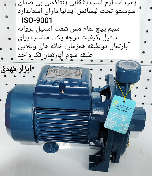 پمپ آب نیم اسب بشقابی سومیتو این پمپ با توان 0.37 کیلووات یا نیم اسب بخار برای سیستم های آبرسانی خانگی ،انتقال سیالات غیر اسیدی شبیه به آب،تامین سیال برج خنک کننده وسیستم های آبیاری و باغبانی و کشاورزی برای تقویت فشار مورد استفاده قرار میگیرد این پمپ ازمحصولات برند چینی معتبر ویگو میباشد ودارای ظرفیت تولید دبی 0.5 متر مکعب بر ساعت وحداکثر هد 22 متر میباشد این پمپ تکفازدارای ورودی یک و خروجی سایز یک اینچ و شافت استنلس استیل 304 میباشد عملکرد این پمپ به صورت سانتریفیوژ بوده و ازمزایای این پمپ مصرف پایین انرژی و کم حجم و و امکان تامین فشار بالا و همچنین نصب و تعمیر و نگهداری آسان نام برد این پمپ برای ساختمانها ی حداکثر 2 طبقه همزمان و آپارتمانهایی که مشکل کمبود فشاردارند برای داخل واحد قابل استفاده میباشد و فوق العاده کم صدا میباشد
