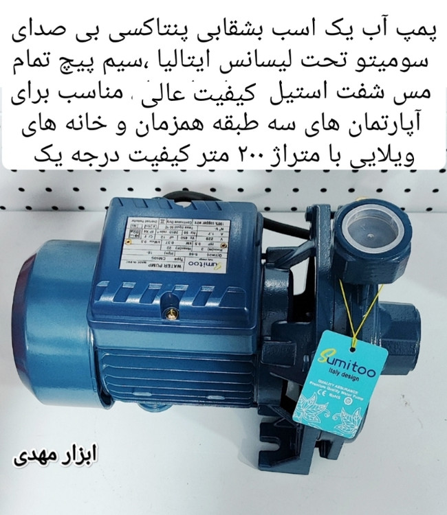 پمپ آب یک اسب بشقابی سایلنت سومیتو تحت لیسانس ایتالیا و نشان استاندارد ISO9001