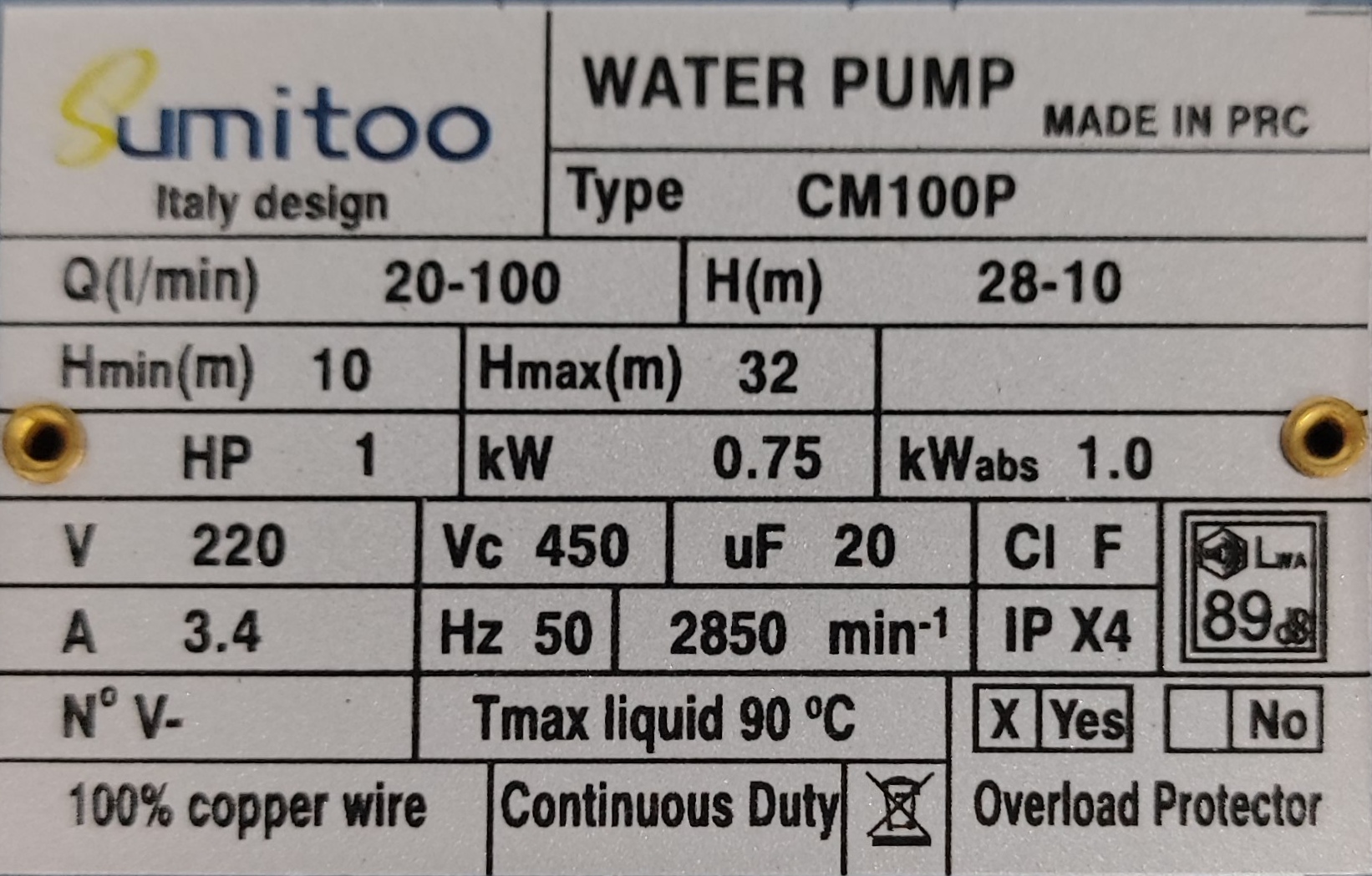 پمپ آب یک اسب بشقابی سایلنت سومیتو تحت لیسانس ایتالیا و نشان استاندارد ISO9001