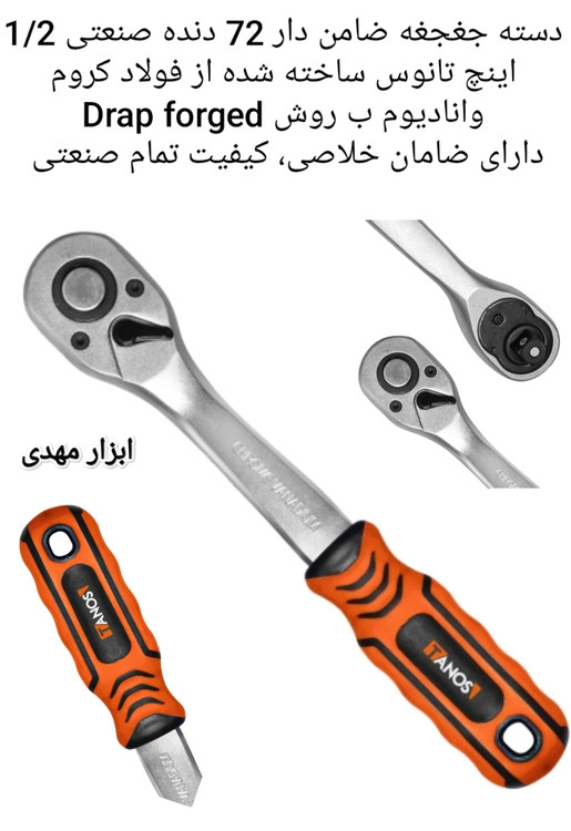 آچار جغجغه 12 اینچ تانوس مدل RW-1272 کیفیت صنعتی 72 دنده ضامن دار