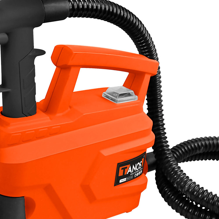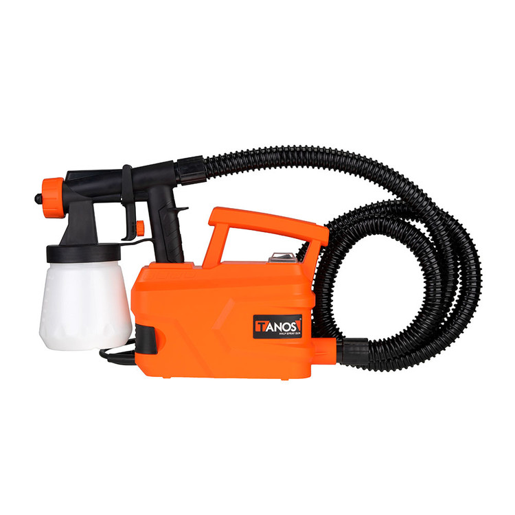 پیستوله برقی 500 وات تانوس با ولتاژ برق ورودی 220 ولت و فرکانس برق شهری 50 هرتز کار میکند. ظرفیت مخزن این محصول 800 میلیلیتر و سایز نازلهای آن 2.6 و 1.8 میلیمتر است که جهت استفاده در شرایط مختلف به کار گرفته میشوند. همچنین حداکثر غلظت رنگ قابل استفاده 2.6/1.8mm بوده و بیشینه دبی خروجی آن 700ml/min میباشد.
