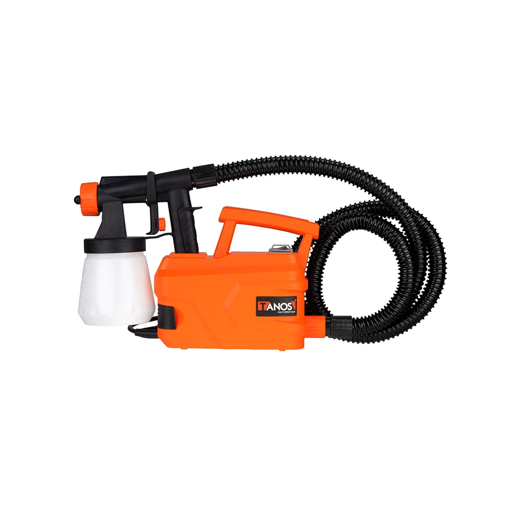 پیستوله برقی 500 وات تانوس با ولتاژ برق ورودی 220 ولت و فرکانس برق شهری 50 هرتز کار میکند. ظرفیت مخزن این محصول 800 میلیلیتر و سایز نازلهای آن 2.6 و 1.8 میلیمتر است که جهت استفاده در شرایط مختلف به کار گرفته میشوند. همچنین حداکثر غلظت رنگ قابل استفاده 2.6/1.8mm بوده و بیشینه دبی خروجی آن 700ml/min میباشد.