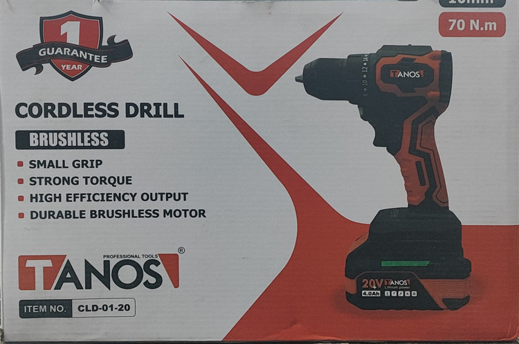 دریل شارژی چکشی 20 ولت براشلس تانوس مدل CLD-01-20 با قدرت 70 نیوتون و یکسال گارانتی و ارسال رایگان