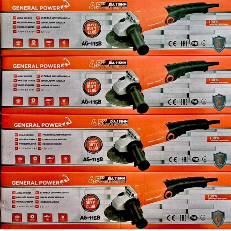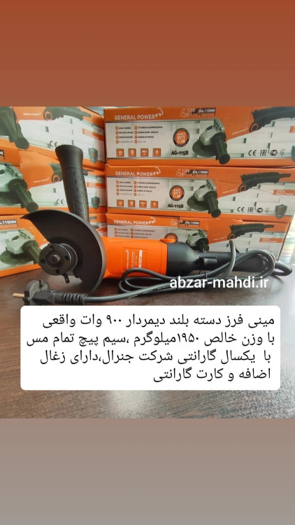 مینی فرز دسته بلند دیمردار جنرال پاور مدلAG-115B با یکسال گارانتی یچسیم پیچ تمام مس