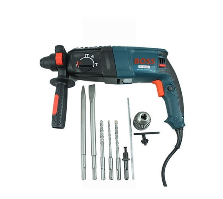 دریل بتن کن سه کاره باس مدلBS26SRE به همراه 2 قلم و 3 مته و سه نظام آچار خور و رابط