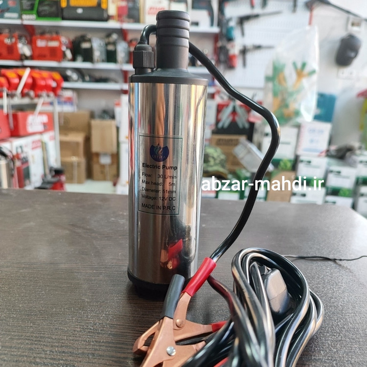 پمپ گازوئیل کش ۱۲ولت قلمی (تو باکی) مدل بدنه استیل مناسب انتقال انواع مایعات