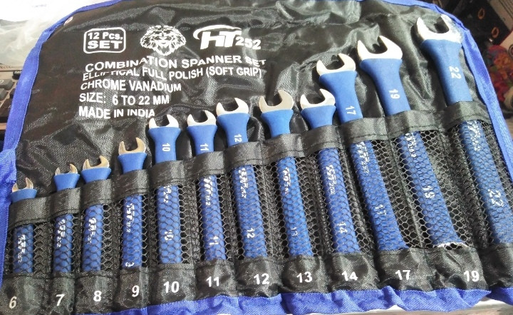 این مجموعه آچار از جنس کروم و وانادیوم ساخته شده و دارای کیفیت مناسبی برای کارهای نیمه صنعتی میاشد این مجموعه آچار در داخل یک عدد کیف اچار باکیفیت برای سهولت جابجایی قرار داده شده ک اچارها شامل شماره های 6_۷_۸_۹_۱٠_۱۱_۱۲_۱۳_۱۴_۱۷_۱۹_۲۲ می باشد ک جزو اچار های پر کاربرد میباشد کیف این مجموعه آچار بصورت لقمه ای جمع و بسته بندی میشود ک برای جا دادن در داخل جعبه ابزار فضای بسیار کمی را اشغال میکند.