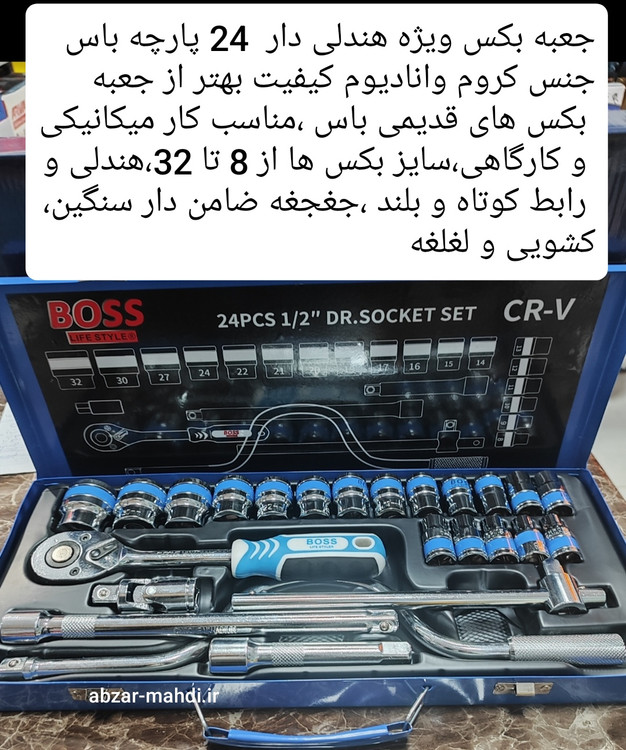 جعبه بکس ۲۴ پارجه هندلی دار ویژه کروم وانادیوم باس حک شده