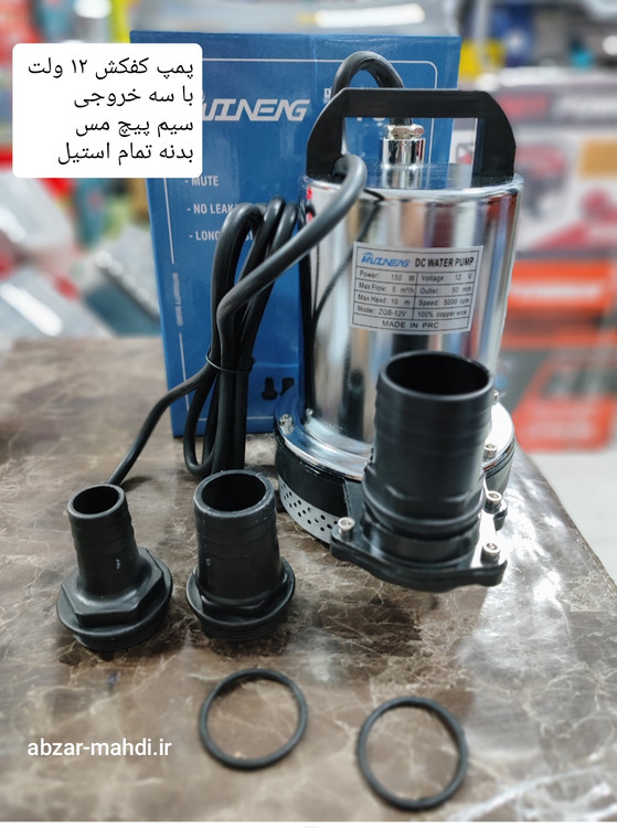پمپ کفکش 10 متری 2اینچ 12ولت مدل DC12این محصول با بدنه استیل -پلاستیک و پروانه تمام پلاستیک و سیم پیچی مس بهترین انتخاب برای استفاده در مواقعی است که آب منطقه دارای خورندگی ست و باعث ایجاد پوسیدگی بر روی بدنه کفکش ها می باشد از دیگر ویژگی ها یاین محصول می توان به ارتفاع بالای پمپاژ 10 متر اشاره نمود وزن بسیار کم این محصول این امکان را میدهد تا بتوان این محصول را به راحتی جابه جا نمود این محصول ساخت کشور چین و قابل استفاده از برق باتری خودروبرق 12 ولت .بهترین گزینه جهت انتقال آب و سیالات از منابع و یا تخلیه استخر و... می باشد