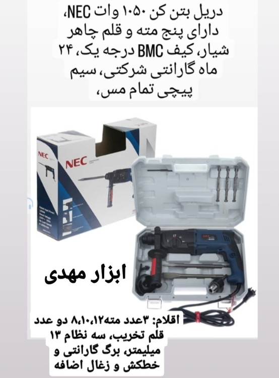 دریل بتن کن ۳.۱ کیلویی۱۰۵۰ وات ان ای سی مدل۹۵۲۶ با ۲۴ ماه گارانتی