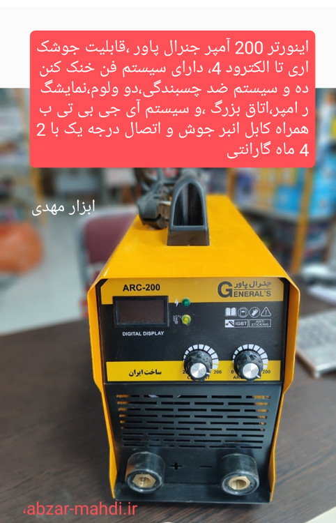 اینورتر جوشکاری 200 آمپر دو ولوم ایرانی جنرال پاور مدلARC-200 با 24 ماه گارانتی