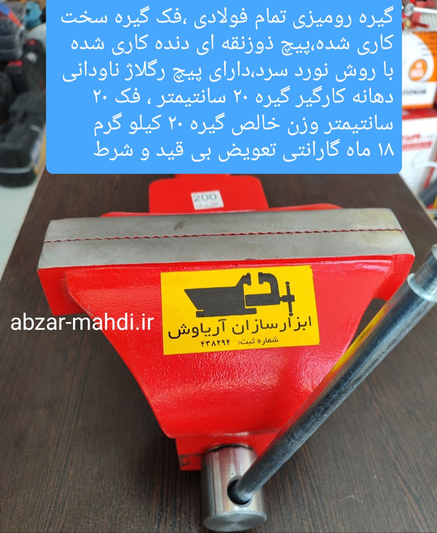 گیره رومیزی فولادی صنعتی ۲۰۰ ابزار سازان آریا با ۱۸ ماه گارانتی تعویض بی قید و شرط