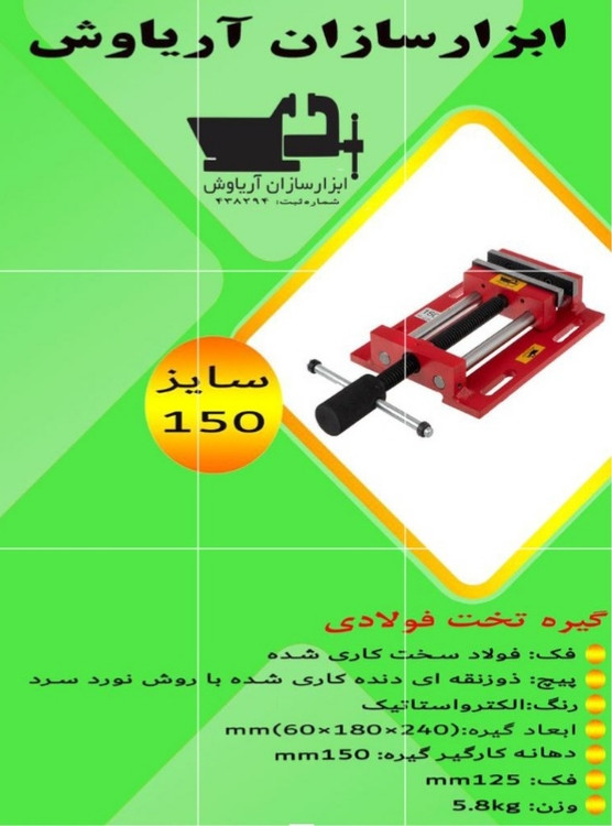 گیره زیر دریل ۱۵۰ فولادی ابزار سازان آریا وش با ۱۸ ماه گارانتی تعویض بی قید و شرط