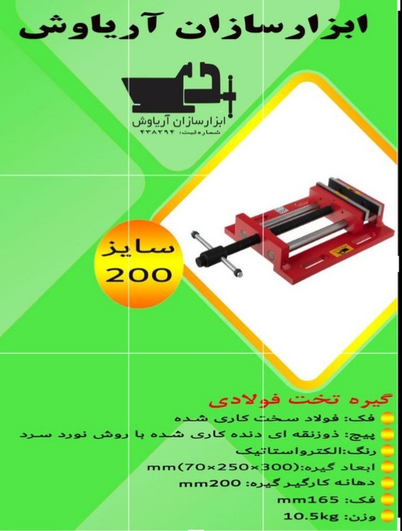 گیره زیر دریلی را۲۰۰ فولادی صنعتی ابزار سازان آریا با ۱۸ ماه گارانتی تعویض بی قید و شرط