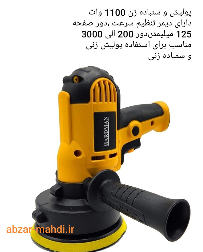 سیم پیچ تمام مس که باعث متمایز شدن با دیگر رقبا میشود موتور 1100وات سایز صفحه ۱۲۵ دیمردار قابلیت تنظیم سرعت پولیش انواع سطوح سنگی .چوب وفلزات. انواع خودرو