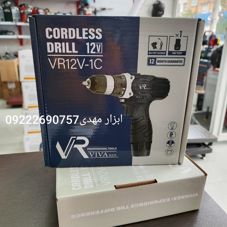 دریل شارژی گیربکسی 12 ولت ویوارکس مدل 12V با یکسال گارانتی