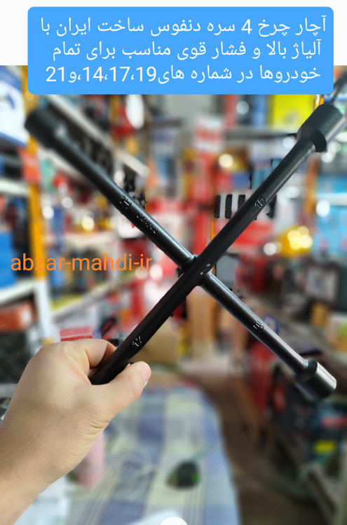- آچار چهار پر - مناسب برای انواع خودروها مثلا خودرو های پژو -سمند پیکان و.. مناسب برای خودروهای کره ای - مناسب برای خودروهای پراید - مناسب برای خودروهای ژاپنی - مناسب برای خودروهای آلمانی