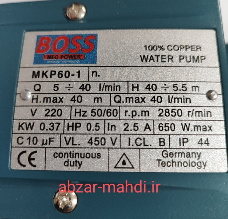 مشخصات پمپ آب نیم اسب باس BOSS مدل MKP60-1
