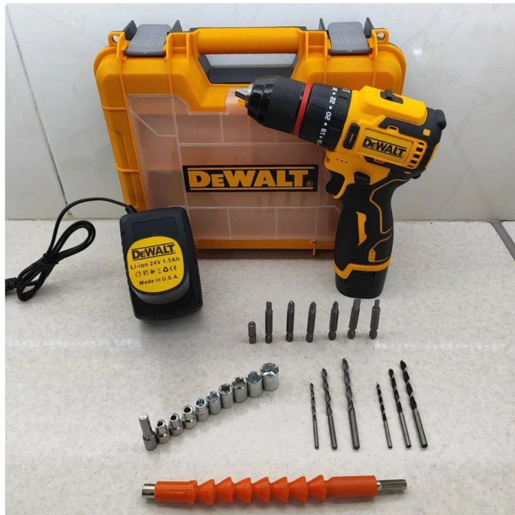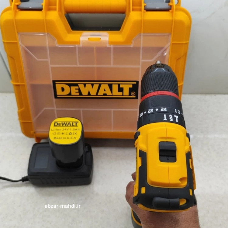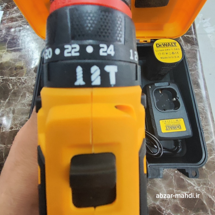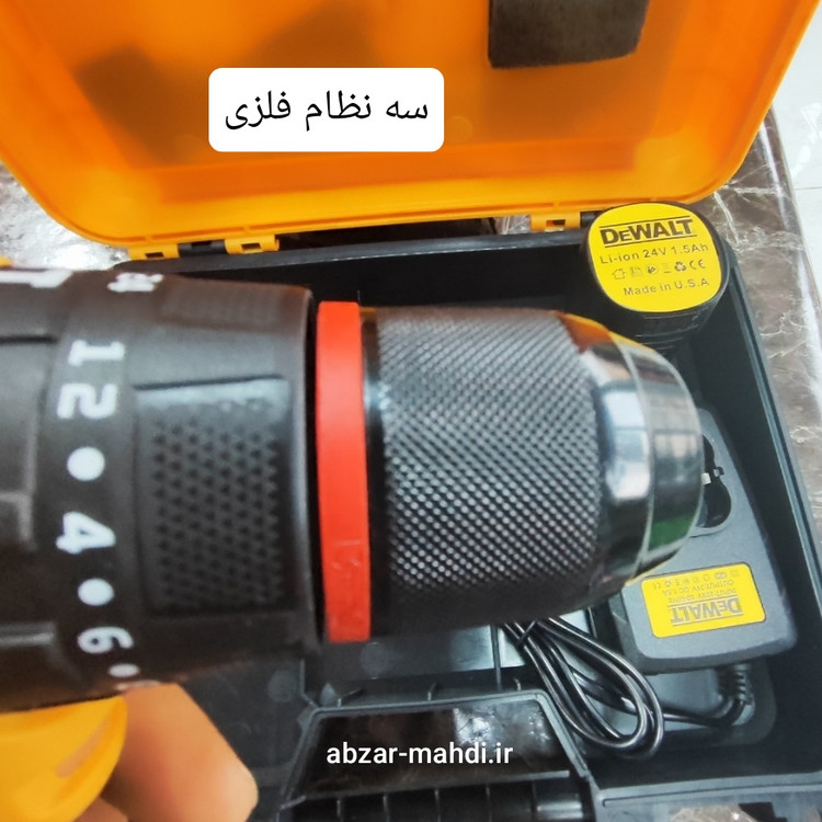 دریل شارژی چکشی موتور براشلس 24 ولت سه نظام 13 فلزی طرح دیوالت مدلRX24 با کیف BMC و لوازم