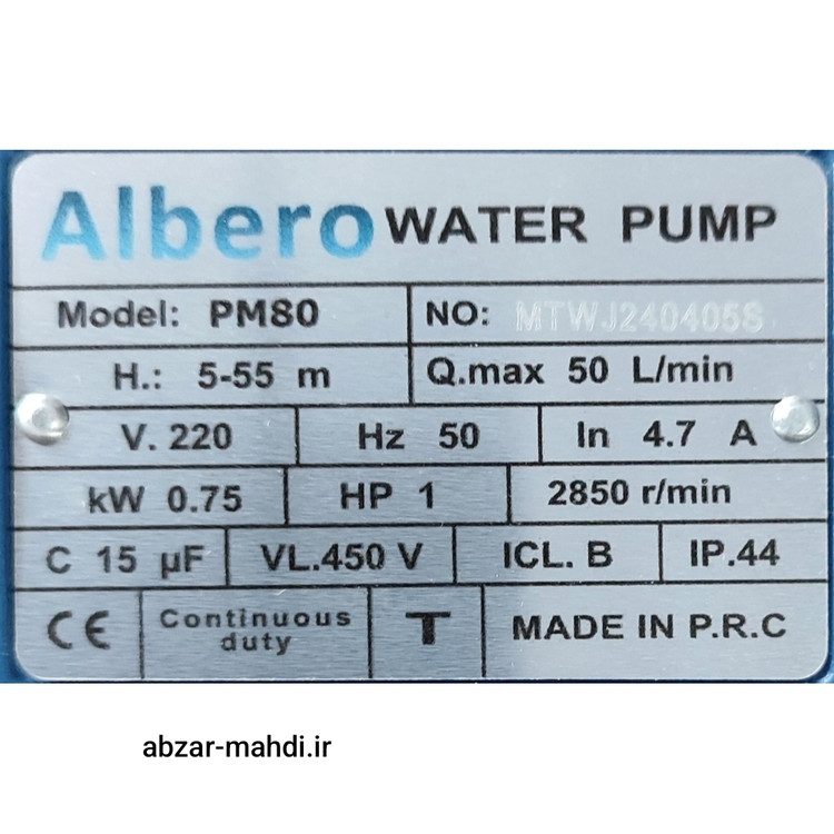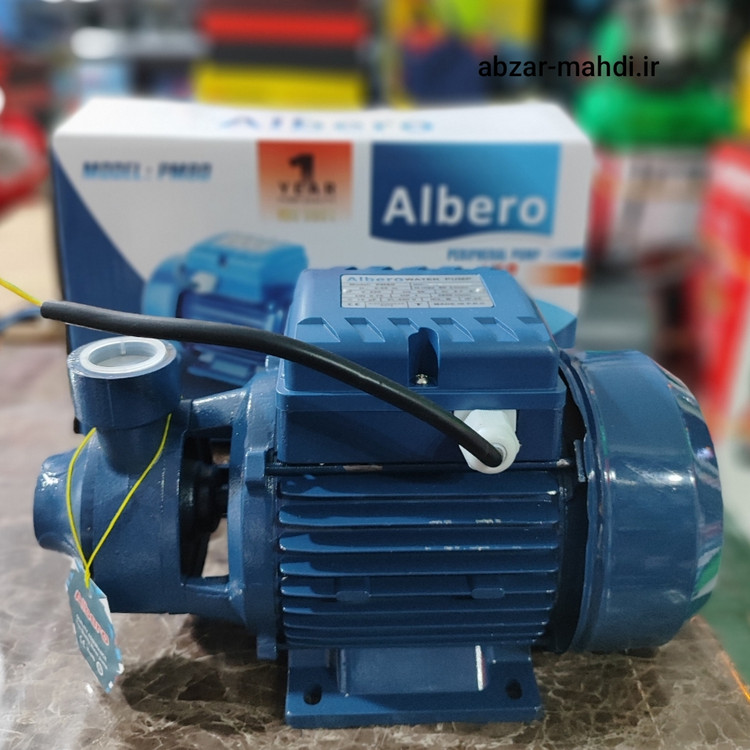 پمپ آب یک اسب محیطی آلبرو مدل PM80 سیم پیچ تمام مس شفت استیل پروانه استیل