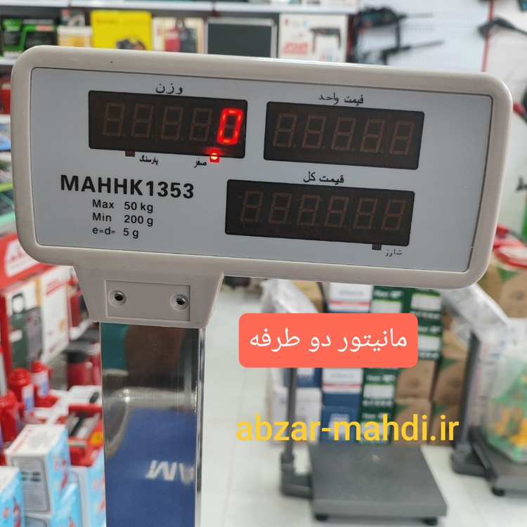 ترازوی محک 50 کیلویی علمکدار فروشگاهی مدل 1353 کیبرد استیل مانیتور دو طرفه