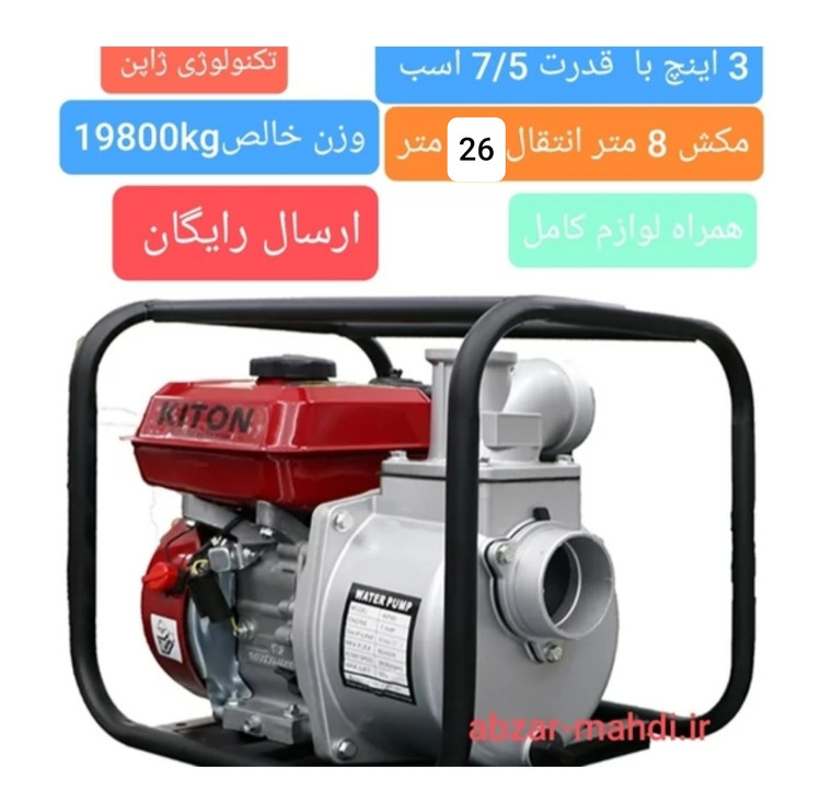 موتور آب طرح هوندا کیتون 3 اینچ قدرت 7/5 اسب موتور آب بنزینی همراه لوازم کامل مدلWP80
