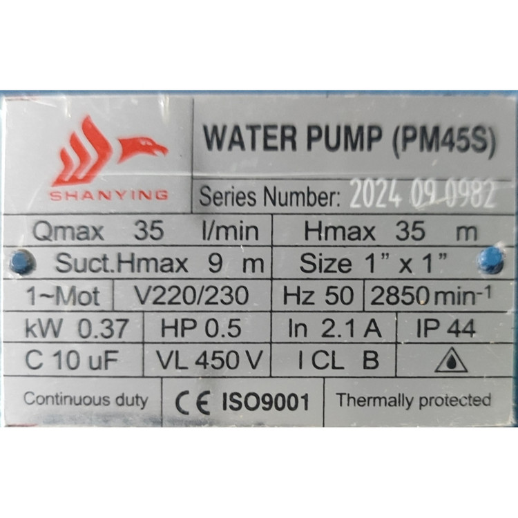 پمپ آب 0/5 اسب پنتاکسی شانینگ مدل PM45Sسیم پیچ تمام مس شفت استیل پروانه برنجی تضمینی