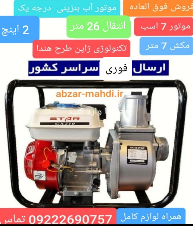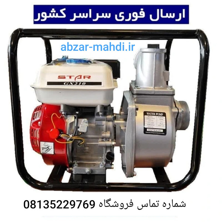 موتور پمپ طرح هندا استار 2 اینچ قدرت 7 اسب موتور آب بنزینی STAR همراه لوازم کامل مدلWP-50