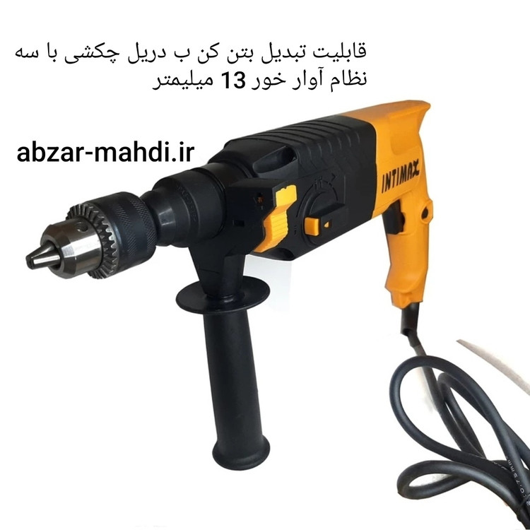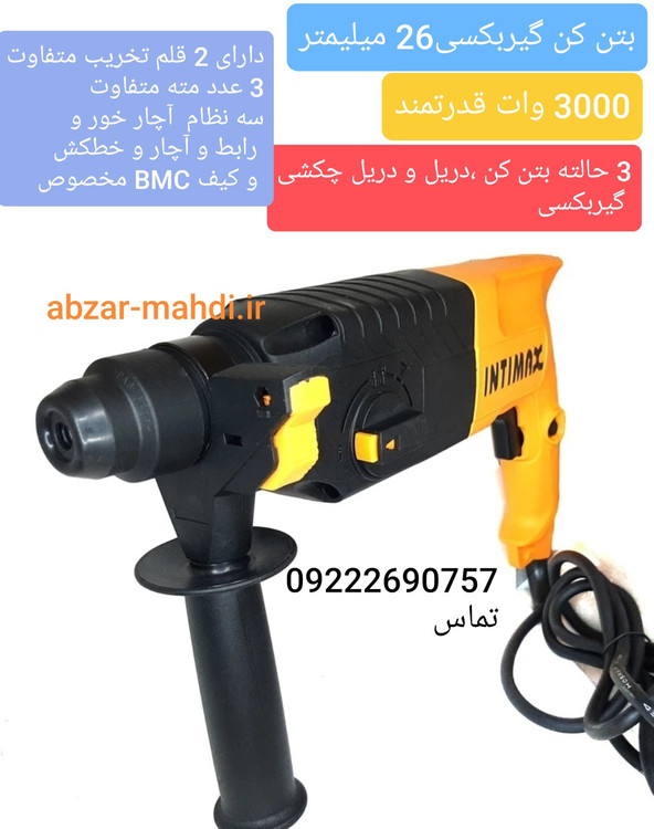 بتن کن گیربکسی 26 میلیمتر 3000 وات صنعتی 3 کاره اینتیمکس مدل0326به همراه 3 مته و دوقلم و سه نظام آچار خور و کیف BMC جنس اصلی