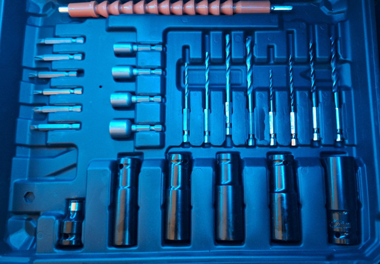 بکس شارژی براشلس 20 ولت 4 آمپر 10سلول ماکیتا مدل 20V دارای 2 باتری بزرگ و25 قلم ابزار کاربردی میباشد