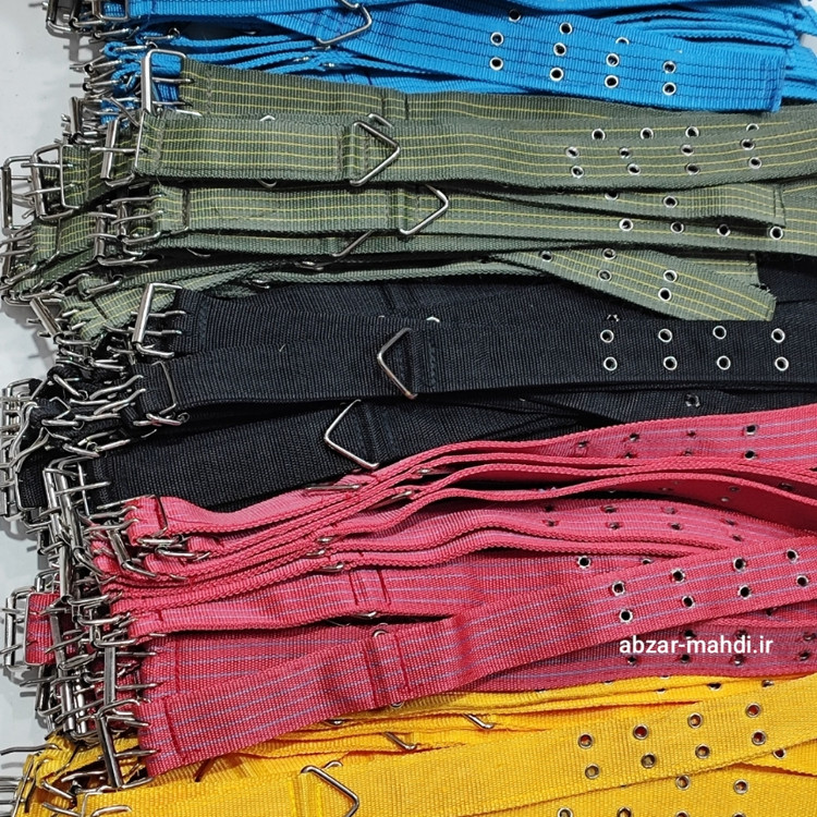 قلاده برزنتی بزرگ دولایه با طول 6۰ سانتی و عرض 5 سانتیمتر به همراه هرزه گرد قلاب دار بزرگ 15 سانتیمتری مناسب سگ و حیوانات بزرگ در رنگ های مختلف