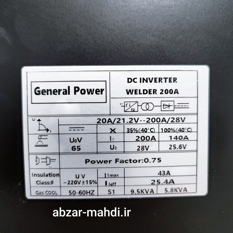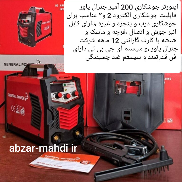 اینورتر جوشکاری 200 آمپر سه ولوم جنرال پاور مدلMMA-200 با 12 ماه کارت گارانتی شرکتی