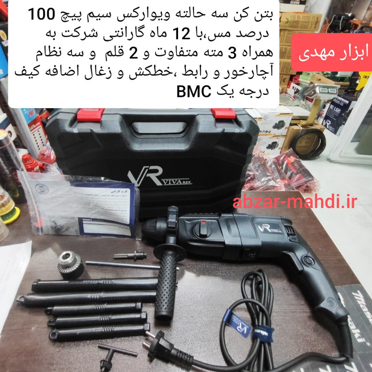 بتن کن سه کاره ویوارکس مدل VR8026 با ۱۲ ماه گارانتی شرکت بهمراه ۳ مته و ۲قلم و سه نظام آچاری 13 و رابط