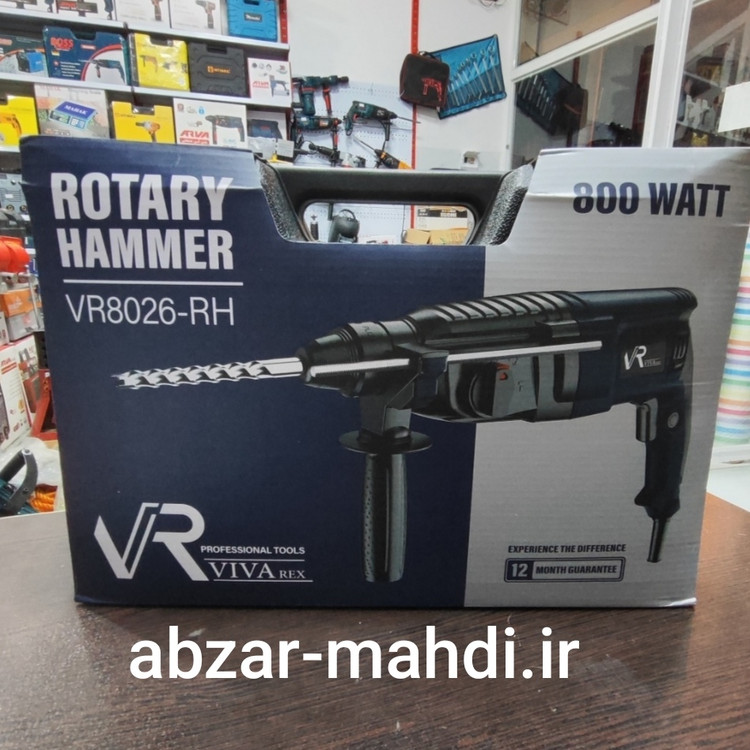 ۸۰۰ وات قطر مته کاری در بتن ۲۶ میلی متر دارای ۳ حالت کاری (دریل – تخریب – دریل چکشی ) دارای کلید چپ گرد و راست گرد و میله تنظیم عمق مجهز به دکمه قفل کن در حالت روشن جهت کار مداوم مجهز به کلید گازی جهت کنترل سرعت مجهز به دسته محافظ با پوشش ضد تعریق دارای سه نظام اضافه بهمراه ۳ عدد مته و ۲ عدد قلم دارای کیف قابل حمل ساخت کشور چین