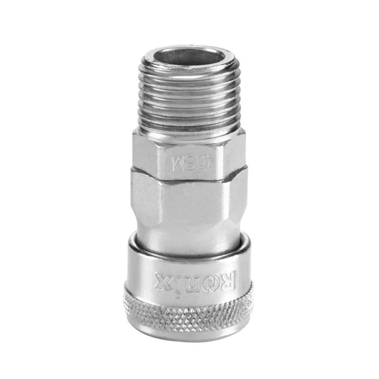 کوپلینگ ½ کمپرسوری رونیکس مدل 40SM، نمونهای از مجموعۀ متنوع انواع دنباله و کوپلینگ این برند است که تولید شده تا پاسخگوی نیازهای شما باشد. این محصول، قابلیت تحمل دما و سایش بینظیری را از خود نشان میدهد. از این قطعه برای اتصال ابزارهای بادی به کمپرسور استفاده میشود.
