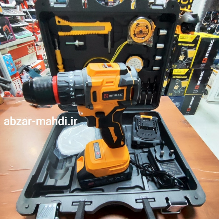 دریل پیچگوشتی شارژی چکشی اینتیمکس مدل 0923 از موتور قدرتمند براشلس با گشتاور 45 نیوتن متر و سه نظام 10 میلیمتری فلزی و قابلیت چکشی برخوردار است دارای تورکمتر 24 و سه حالت پیچ بند ،سوراخکاری و چکشی دارد.این دستگاه با متعلقات همراه در یک جعبه پلاستیکی BMC با کیفیت به همراه لوازم جانبی نظیر متر۳ متری، کاتر ، چسب برق ، مته ۶ عدد،نوک پیچگوشتی ۶ عدد، ۴ عدد بکس در سایزهای۸/۹/۱۰/۱۲ پد پولیش و تبدیل قرار دارد.درضمن این مجموعه دارای 2 عدی باتری 48 ولت میباشد. دارای چراغ ال ای دی دید در شب ،نشانگر شارژر و شارژر سوزنی اوریجینال میباشد