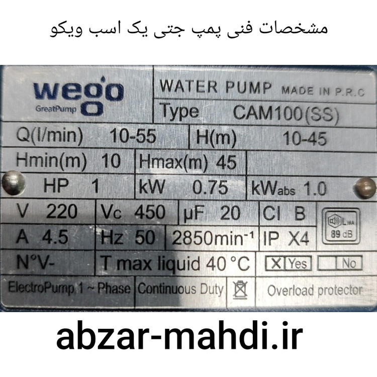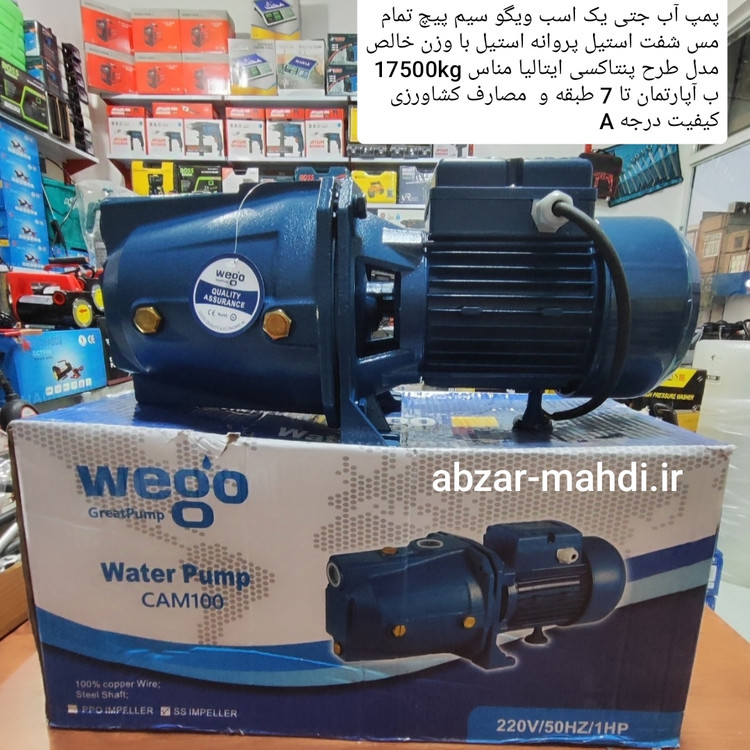 پمپ آب یک اسب جتی ویگو مناسب آپارتمان تا 7 طبقه میباشد این پمپ دارای سیم پیچ تمام مس شفت استیل پروانه استیل میباشد مدل طرح پنتاکسی ایتالیا با قدرت فوق العاده و طول عمر بالا