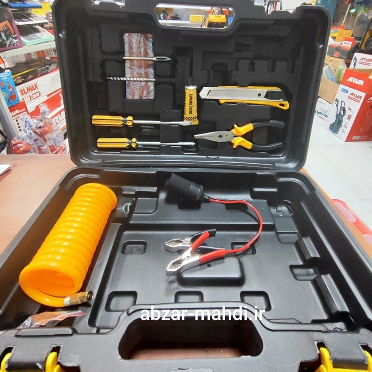 پمپ باد فندکی دوسیلندر دیوالت مدل 12V با وسایل کامل پنچر گیری