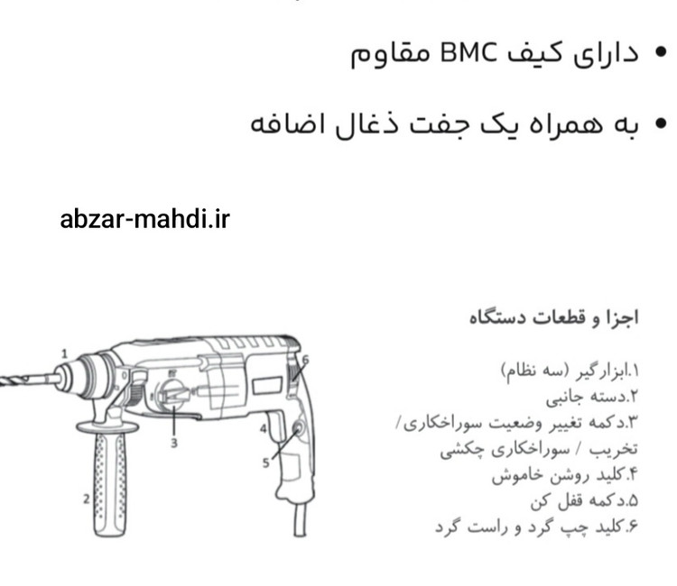 - مجهز به سیستم ابزارگیر چهارشیار SDS_PLUS