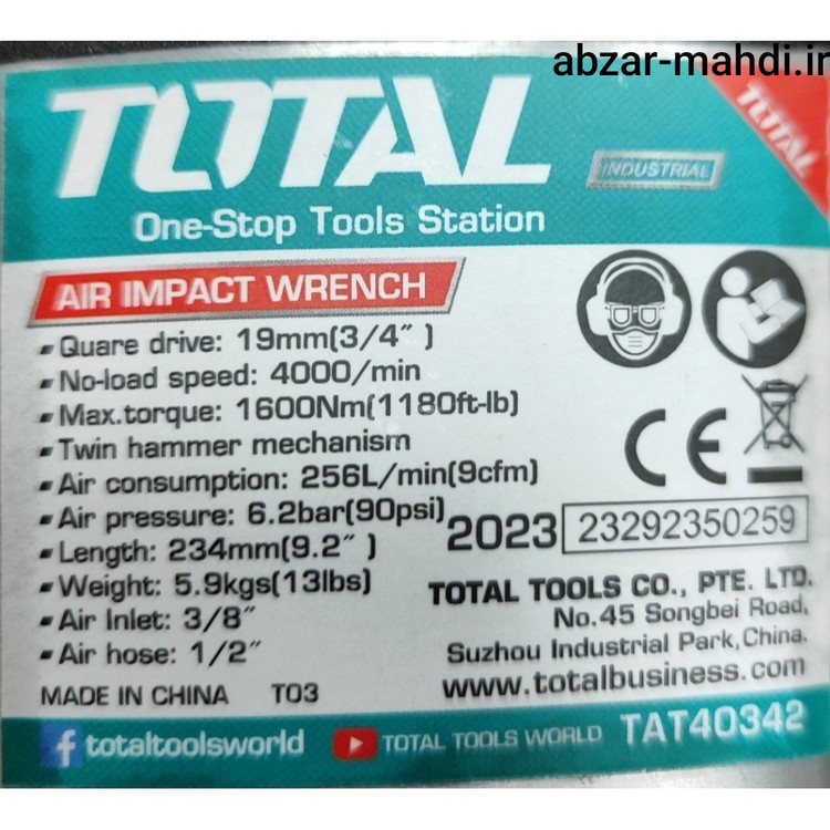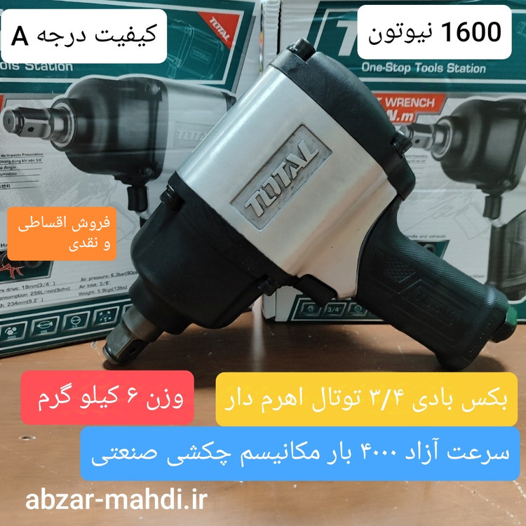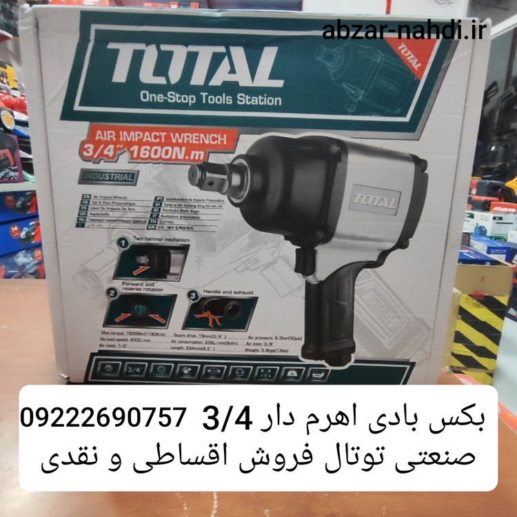 - بکس بادی توتال 3/4 اینچ: مشخصات و توضیحاتبکس بادی توتال با دایره درایو 19mm (3/4 اینچ) یکی از ابزارهای قدرتمند و کارآمد برای مصارف صنعتی و تعمیرگاهی است. این ابزار با طراحی خاص و تکنولوژی پیشرفته، به شما کمک میکند تا کارهای پیچیده خود را به سادگی و سرعت انجام دهید. در ادامه به بررسی مشخصات فنی و ویژگیهای این بکس بادی میپردازیم.#### مشخصات فنی: