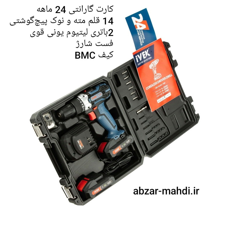 دریل شارژی 14/4 ولت 2 باتری ایوک مدل K-7214V با 24 ماه گارانتی شرکت ایوک و خدمات پس از فروش