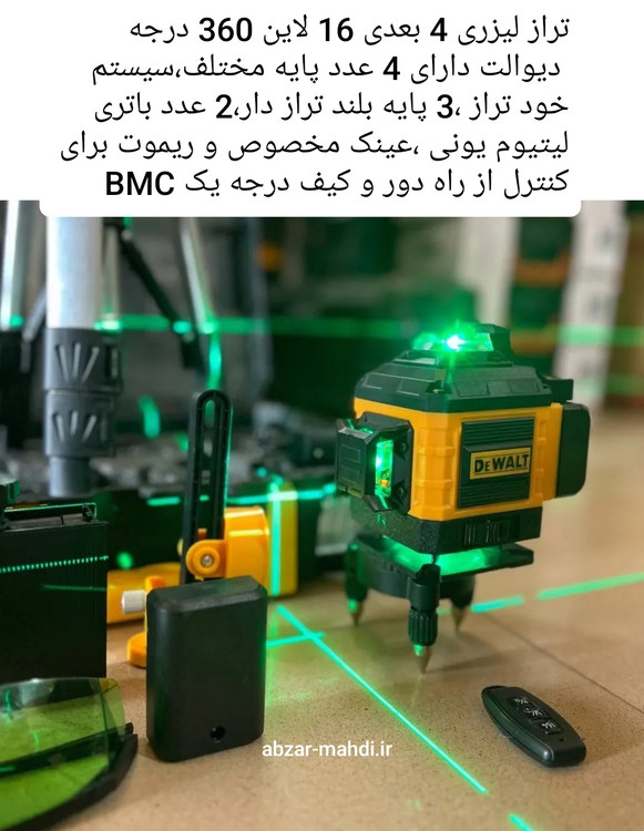تراز لیزری شارژی 4 بعدی 16 لاین نور سبز دیوالت مدل DV360